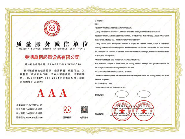 質(zhì)量服務(wù)誠(chéng)信單位AAA