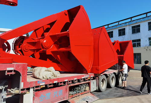 打開鏟斗時,增加上梁滑輪與下梁滑輪之間的中心距離,然后支撐鋼絲繩下落,將打開的抓斗落在要抓取的松散堆積物上,然后收集和關閉鋼絲繩,將上梁滑輪與下梁滑輪之間的中心距離恢復到原來的位置,從而完成抓取材料的過程。封閉斗內裝滿材料,提起開閉鋼絲繩。整個抓斗也被提起,通過駕駛移動到所需的卸料現(xiàn)場,抓取的材料被拆除。