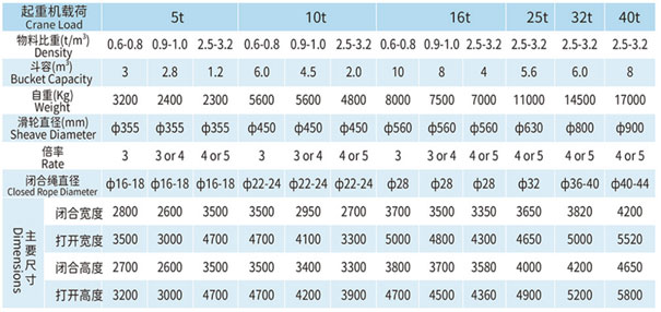 四索多瓣抓斗技術(shù)參數(shù)