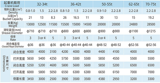 四索雙瓣抓斗技術參數